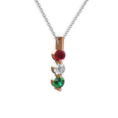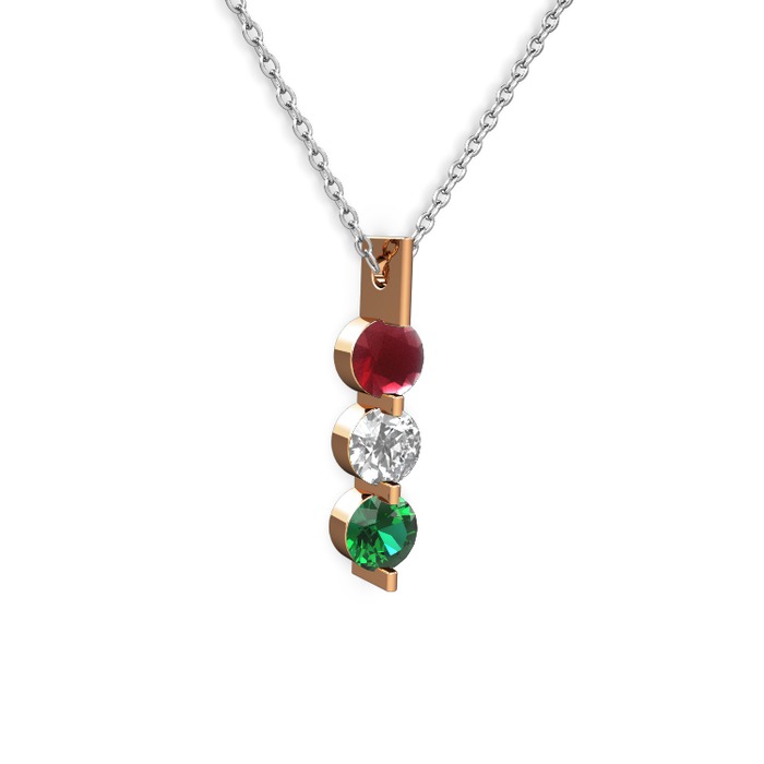 Kök yakut, swarovski ve yeşil kuvars 8 ayar rose altın kolye (40 cm beyaz altın rolo zincir)