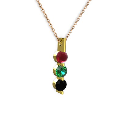 Kök yakut, yeşil kuvars ve siyah zirkon 14 ayar altın kolye (40 cm rose altın rolo zincir)