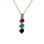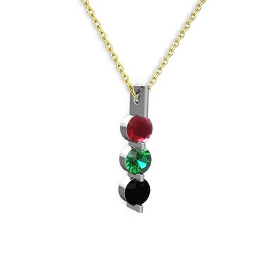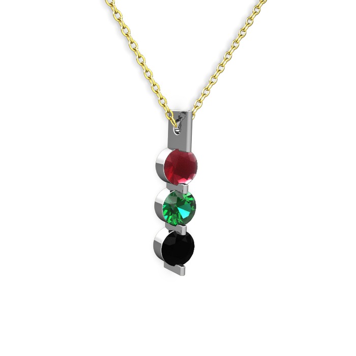 Kök yakut, yeşil kuvars ve siyah zirkon 8 ayar beyaz altın kolye (40 cm gümüş rolo zincir)
