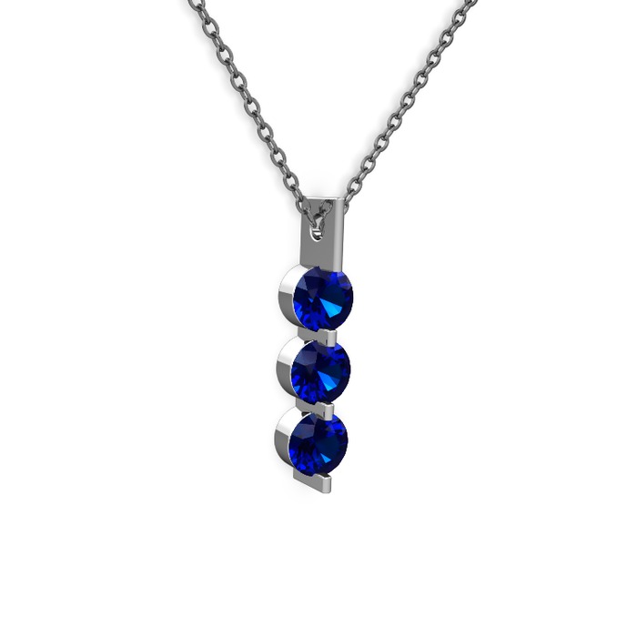 Lab safir 14 ayar beyaz altın kolye (40 cm gümüş rolo zincir)