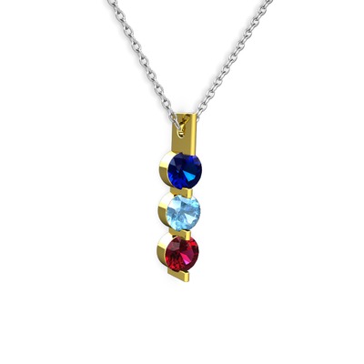 Lab safir, akuamarin ve rodolit garnet 925 ayar altın kaplama gümüş kolye (40 cm beyaz altın rolo zincir)