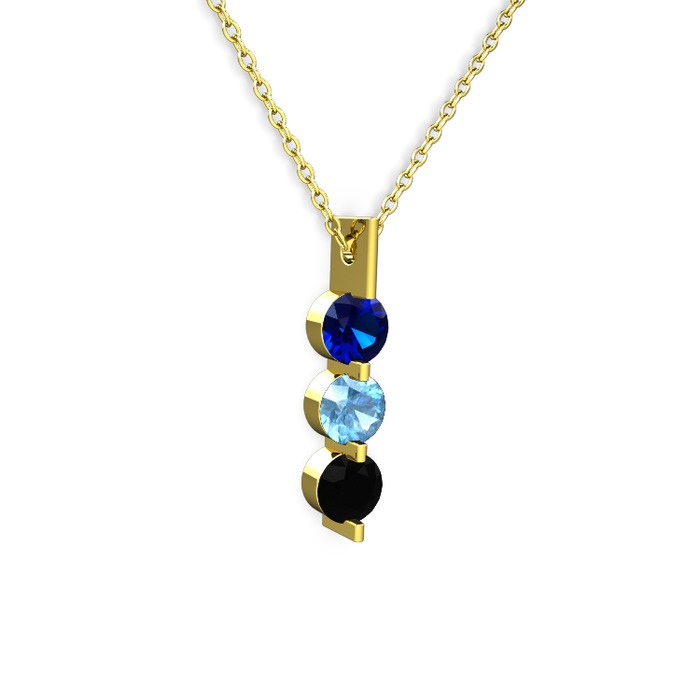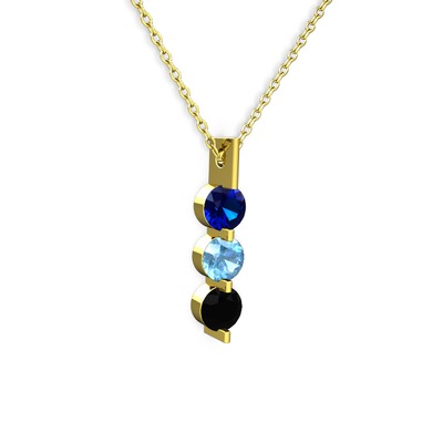 Lab safir, akuamarin ve siyah zirkon 925 ayar altın kaplama gümüş kolye (40 cm altın rolo zincir)