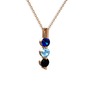 Lab safir, akuamarin ve siyah zirkon 925 ayar rose altın kaplama gümüş kolye (40 cm rose altın rolo zincir)