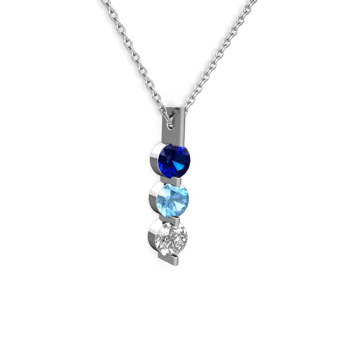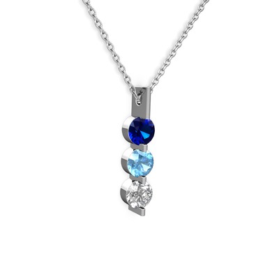 Lab safir, akuamarin ve swarovski 8 ayar beyaz altın kolye (40 cm gümüş rolo zincir)
