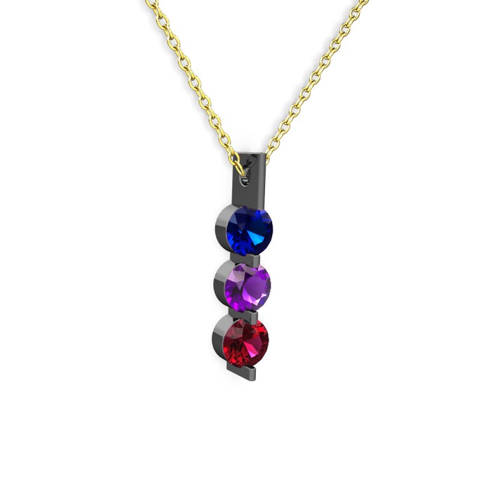 Lab safir, ametist ve rodolit garnet 925 ayar siyah rodyum kaplama gümüş kolye (40 cm gümüş rolo zincir)