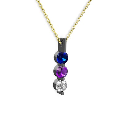 Lab safir, ametist ve swarovski 925 ayar siyah rodyum kaplama gümüş kolye (40 cm altın rolo zincir)
