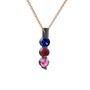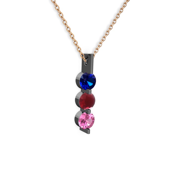 Lab safir, kök yakut ve pembe kuvars 925 ayar siyah rodyum kaplama gümüş kolye (40 cm rose altın rolo zincir)