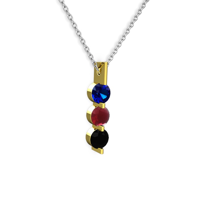 Lab safir, kök yakut ve siyah zirkon 14 ayar altın kolye (40 cm gümüş rolo zincir)