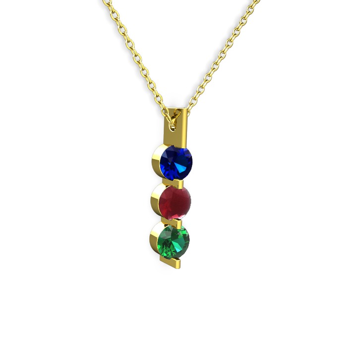 Lab safir, kök yakut ve yeşil kuvars 14 ayar altın kolye (40 cm altın rolo zincir)