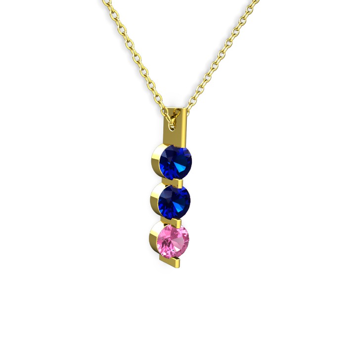 Lab safir ve pembe kuvars 925 ayar altın kaplama gümüş kolye (40 cm altın rolo zincir)