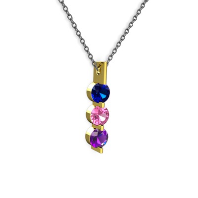 Lab safir, pembe kuvars ve ametist 14 ayar altın kolye (40 cm gümüş rolo zincir)