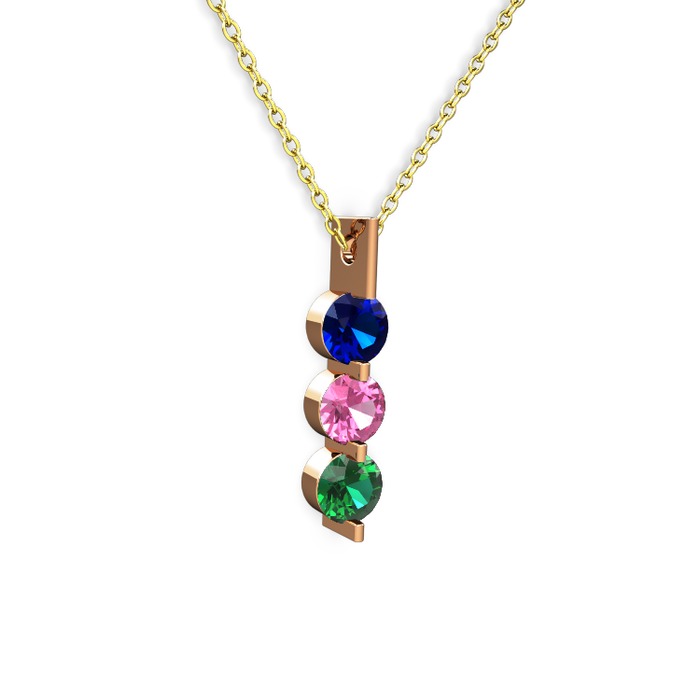 Lab safir, pembe kuvars ve yeşil kuvars 14 ayar rose altın kolye (40 cm altın rolo zincir)