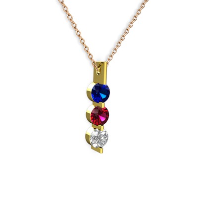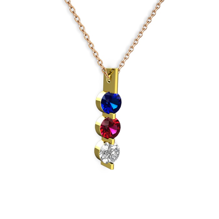 Lab safir, rodolit garnet ve swarovski 8 ayar altın kolye (40 cm gümüş rolo zincir)