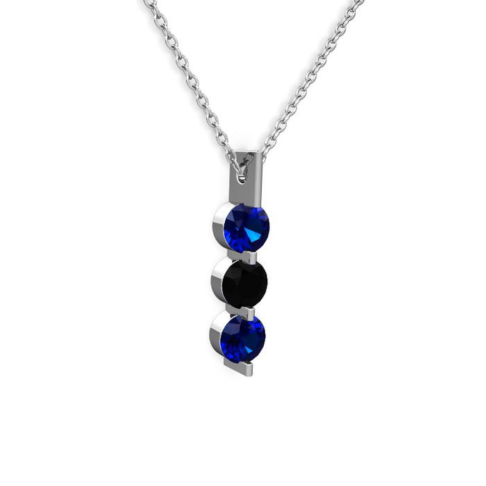 Lab safir ve siyah zirkon 8 ayar beyaz altın kolye (40 cm beyaz altın rolo zincir)
