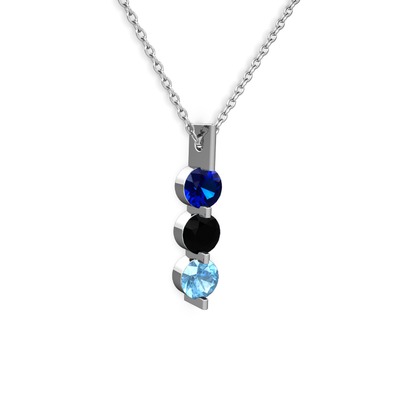 Lab safir, siyah zirkon ve akuamarin 14 ayar beyaz altın kolye (40 cm beyaz altın rolo zincir)