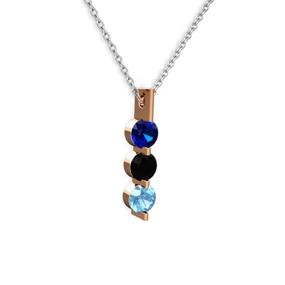 Lab safir, siyah zirkon ve akuamarin 14 ayar rose altın kolye (40 cm gümüş rolo zincir)