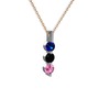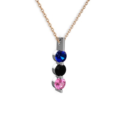 Lab safir, siyah zirkon ve pembe kuvars 8 ayar beyaz altın kolye (40 cm rose altın rolo zincir)
