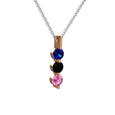 Lab safir, siyah zirkon ve pembe kuvars 8 ayar rose altın kolye (40 cm beyaz altın rolo zincir)