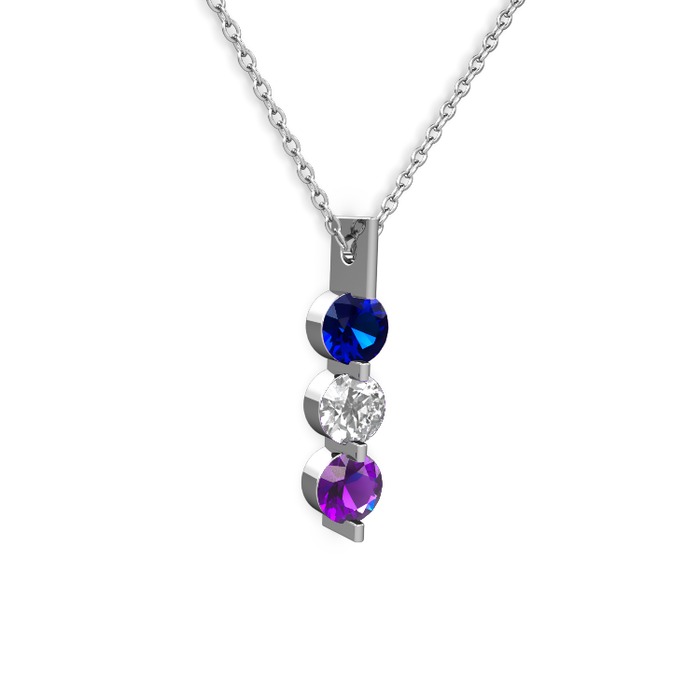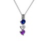 Lab safir, swarovski ve ametist 925 ayar gümüş kolye (40 cm beyaz altın rolo zincir)