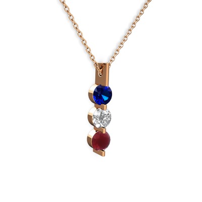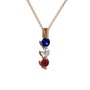 Lab safir, swarovski ve kök yakut 8 ayar rose altın kolye (40 cm rose altın rolo zincir)