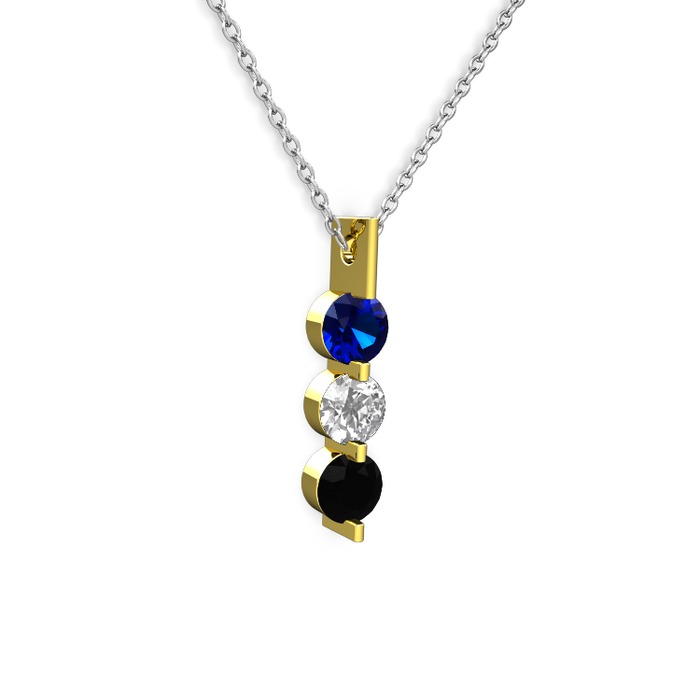 Lab safir, swarovski ve siyah zirkon 8 ayar altın kolye (40 cm gümüş rolo zincir)