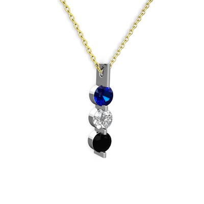 Lab safir, swarovski ve siyah zirkon 925 ayar gümüş kolye (40 cm gümüş rolo zincir)