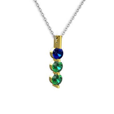 Lab safir ve yeşil kuvars 14 ayar altın kolye (40 cm gümüş rolo zincir)