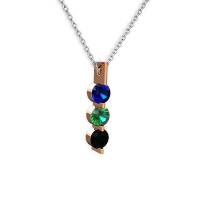 Lab safir, yeşil kuvars ve siyah zirkon 14 ayar rose altın kolye (40 cm beyaz altın rolo zincir)