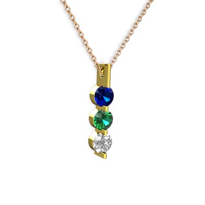 Lab safir, yeşil kuvars ve swarovski 8 ayar altın kolye (40 cm gümüş rolo zincir)