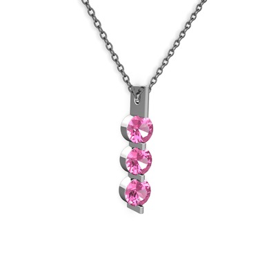Pembe kuvars 14 ayar beyaz altın kolye (40 cm gümüş rolo zincir)