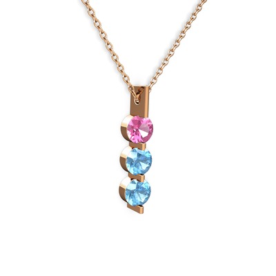 Pembe kuvars ve akuamarin 14 ayar rose altın kolye (40 cm rose altın rolo zincir)