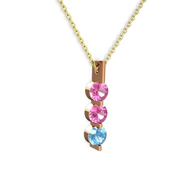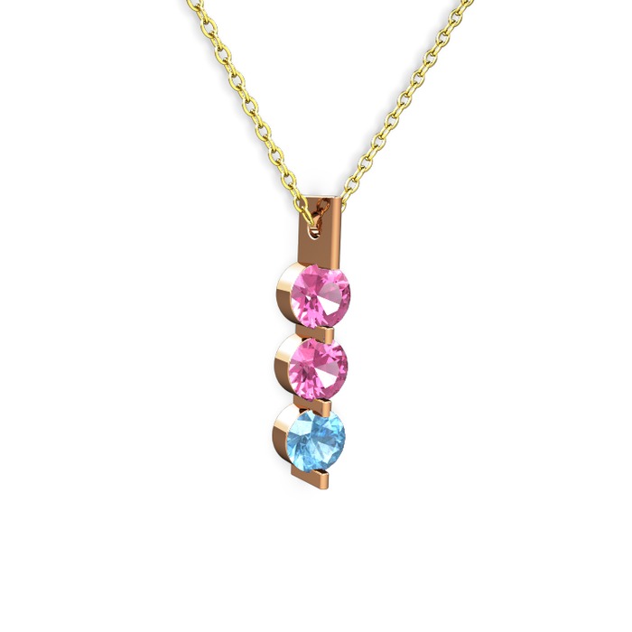 Pembe kuvars ve akuamarin 8 ayar rose altın kolye (40 cm gümüş rolo zincir)