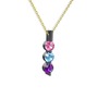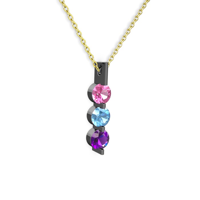 Pembe kuvars, akuamarin ve ametist 925 ayar siyah rodyum kaplama gümüş kolye (40 cm altın rolo zincir)
