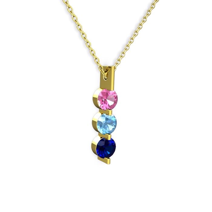 Pembe kuvars, akuamarin ve lab safir 14 ayar altın kolye (40 cm altın rolo zincir)