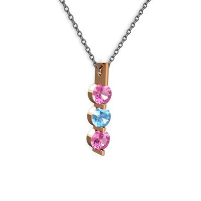 Pembe kuvars ve akuamarin 925 ayar rose altın kaplama gümüş kolye (40 cm gümüş rolo zincir)