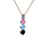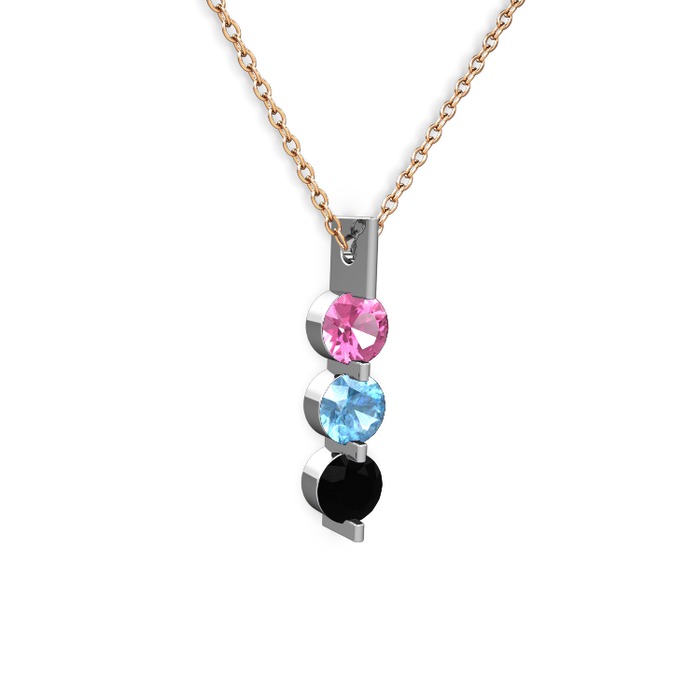 Pembe kuvars, akuamarin ve siyah zirkon 14 ayar beyaz altın kolye (40 cm rose altın rolo zincir)