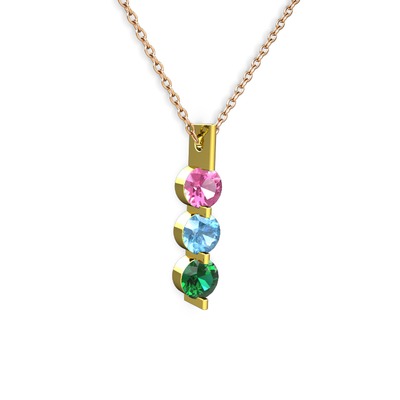 Pembe kuvars, akuamarin ve yeşil kuvars 925 ayar altın kaplama gümüş kolye (40 cm rose altın rolo zincir)