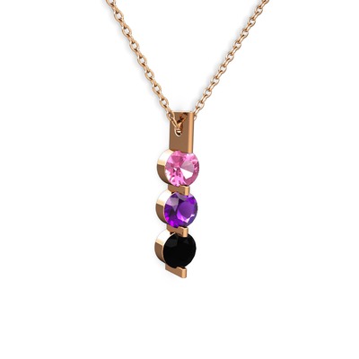 Pembe kuvars, ametist ve siyah zirkon 925 ayar rose altın kaplama gümüş kolye (40 cm gümüş rolo zincir)