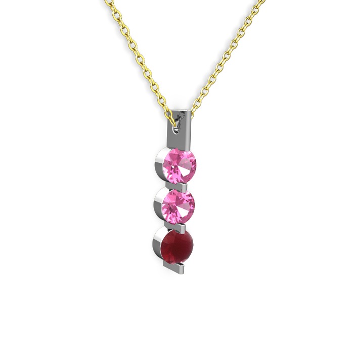 Pembe kuvars ve kök yakut 8 ayar beyaz altın kolye (40 cm altın rolo zincir)