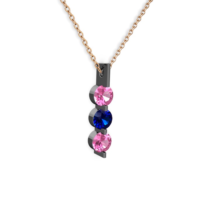 Pembe kuvars ve lab safir 925 ayar siyah rodyum kaplama gümüş kolye (40 cm rose altın rolo zincir)