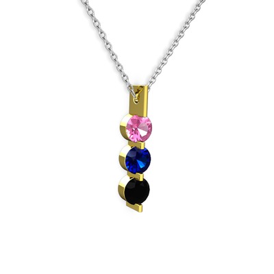 Pembe kuvars, lab safir ve siyah zirkon 14 ayar altın kolye (40 cm gümüş rolo zincir)