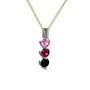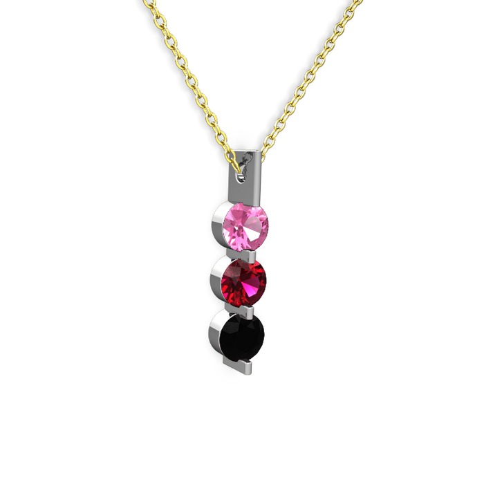 Pembe kuvars, rodolit garnet ve siyah zirkon 14 ayar beyaz altın kolye (40 cm gümüş rolo zincir)
