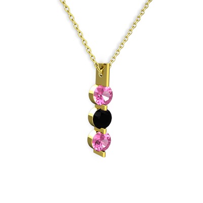 Pembe kuvars ve siyah zirkon 8 ayar altın kolye (40 cm altın rolo zincir)