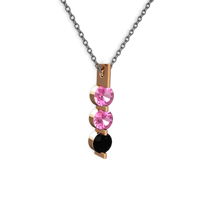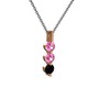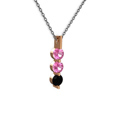 Pembe kuvars ve siyah zirkon 8 ayar rose altın kolye (40 cm gümüş rolo zincir)