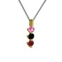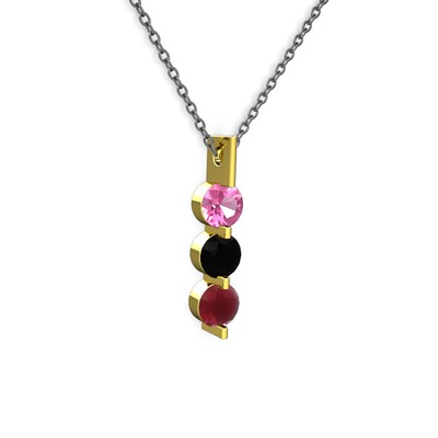 Pembe kuvars, siyah zirkon ve kök yakut 14 ayar altın kolye (40 cm gümüş rolo zincir)