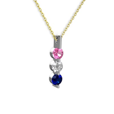 Pembe kuvars, swarovski ve lab safir 8 ayar beyaz altın kolye (40 cm altın rolo zincir)