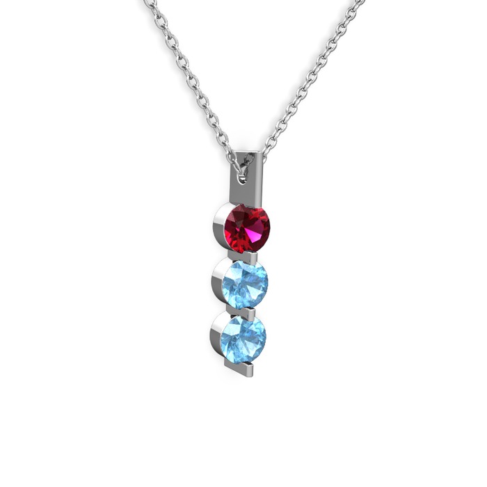 Rodolit garnet ve akuamarin 14 ayar beyaz altın kolye (40 cm beyaz altın rolo zincir)