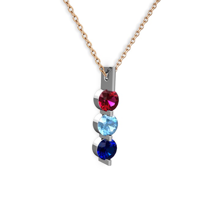 Rodolit garnet, akuamarin ve lab safir 14 ayar beyaz altın kolye (40 cm rose altın rolo zincir)