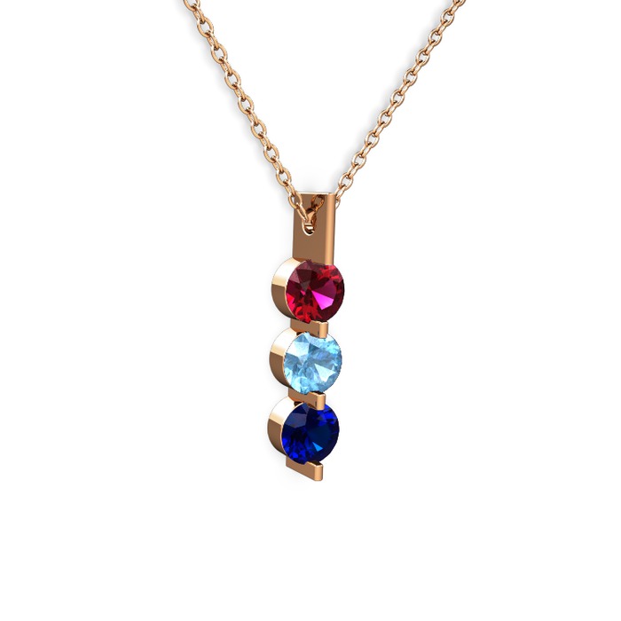 Rodolit garnet, akuamarin ve lab safir 8 ayar rose altın kolye (40 cm gümüş rolo zincir)