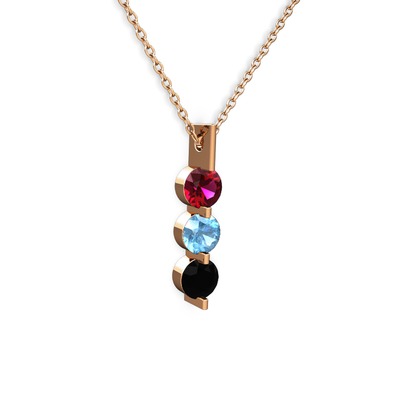 Rodolit garnet, akuamarin ve siyah zirkon 8 ayar rose altın kolye (40 cm rose altın rolo zincir)